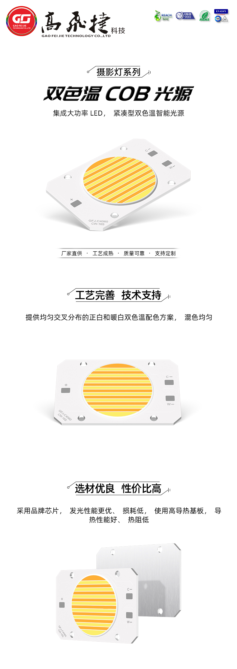 COB光源-雙色變光系列G1616-16C-5W